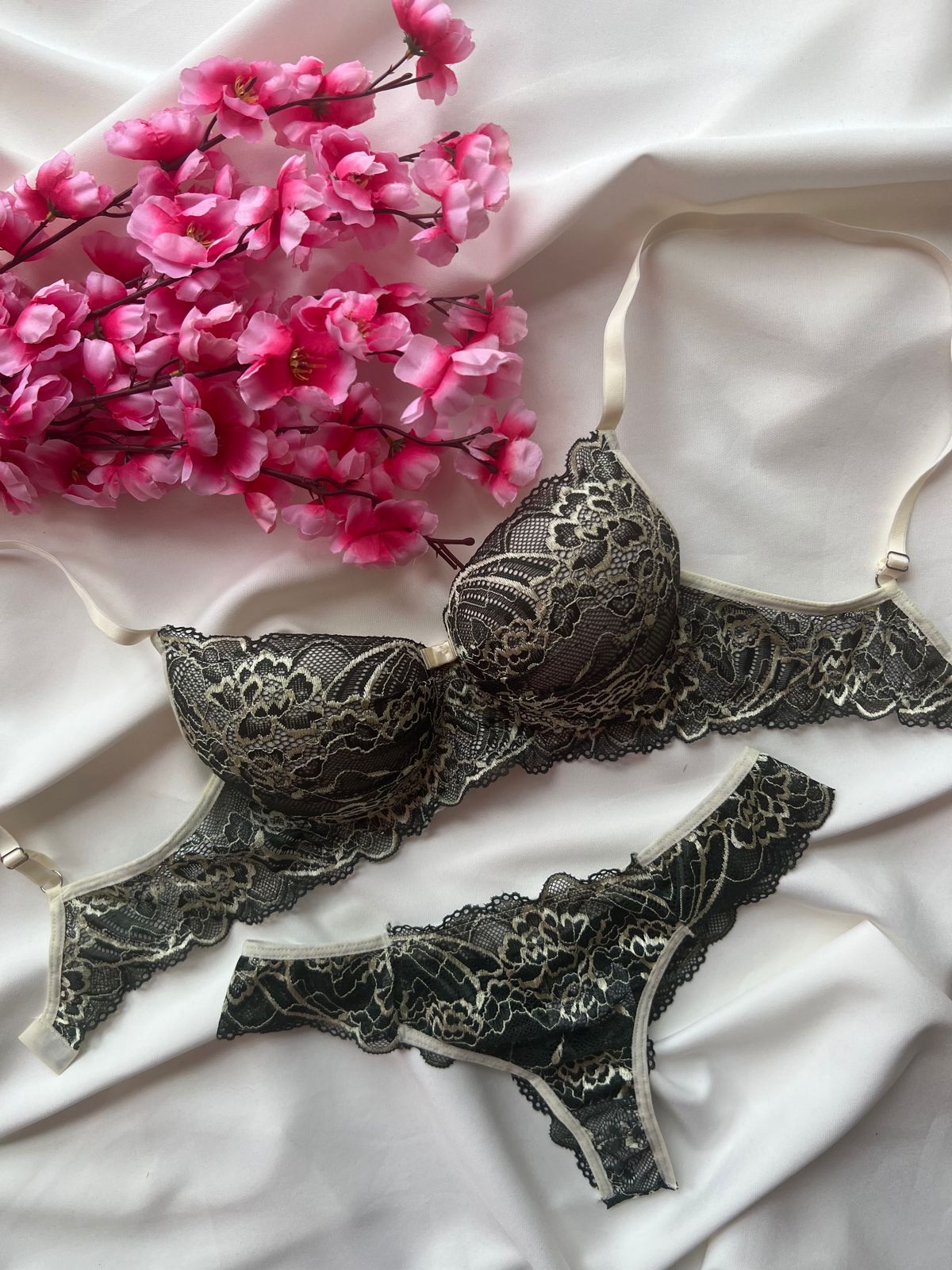 Conjunto todo em renda premium( com poliamida /super macia), forro 100% algodão .